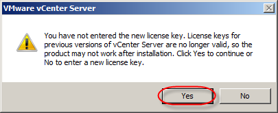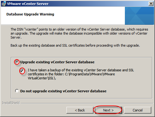 An earlier version of vCenter Server is already installed on this computer and will be upgraded to vCenter Server 5.5.0