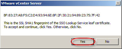 Note: You must use the Fully Qualified Domain Name (FQDN) and not the IP address. Using the IP may result in certificate related errors when starting vCenter Server. For more information, see vCenter Server 5.x fails to start after upgrading Single Sign-On configuration from vSphere 5.1 to vSphere 5.5 (2058080).