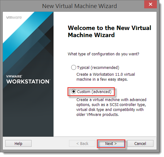 I chose Workstation 11.0 as the VM hardware compatibility level.